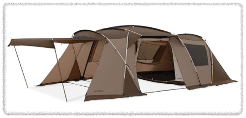 긴 터널 모양으로 이루어진 구조로, 공간이 넓고 여러 구획을 나눌 수 있어 가족 캠퍼들에게 인기가 많습니다.